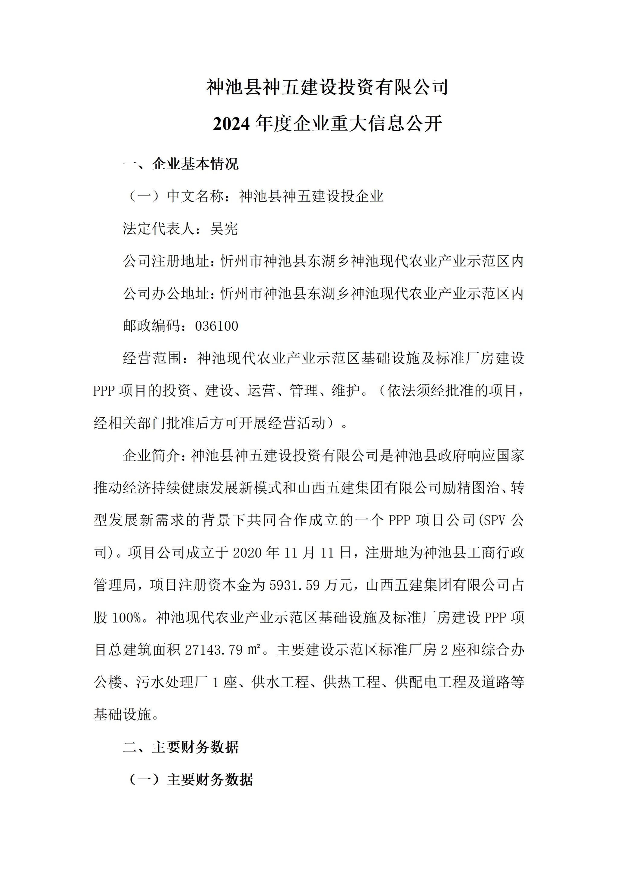 神池县神五建设投资有限公司2024年度企业重大信息果真