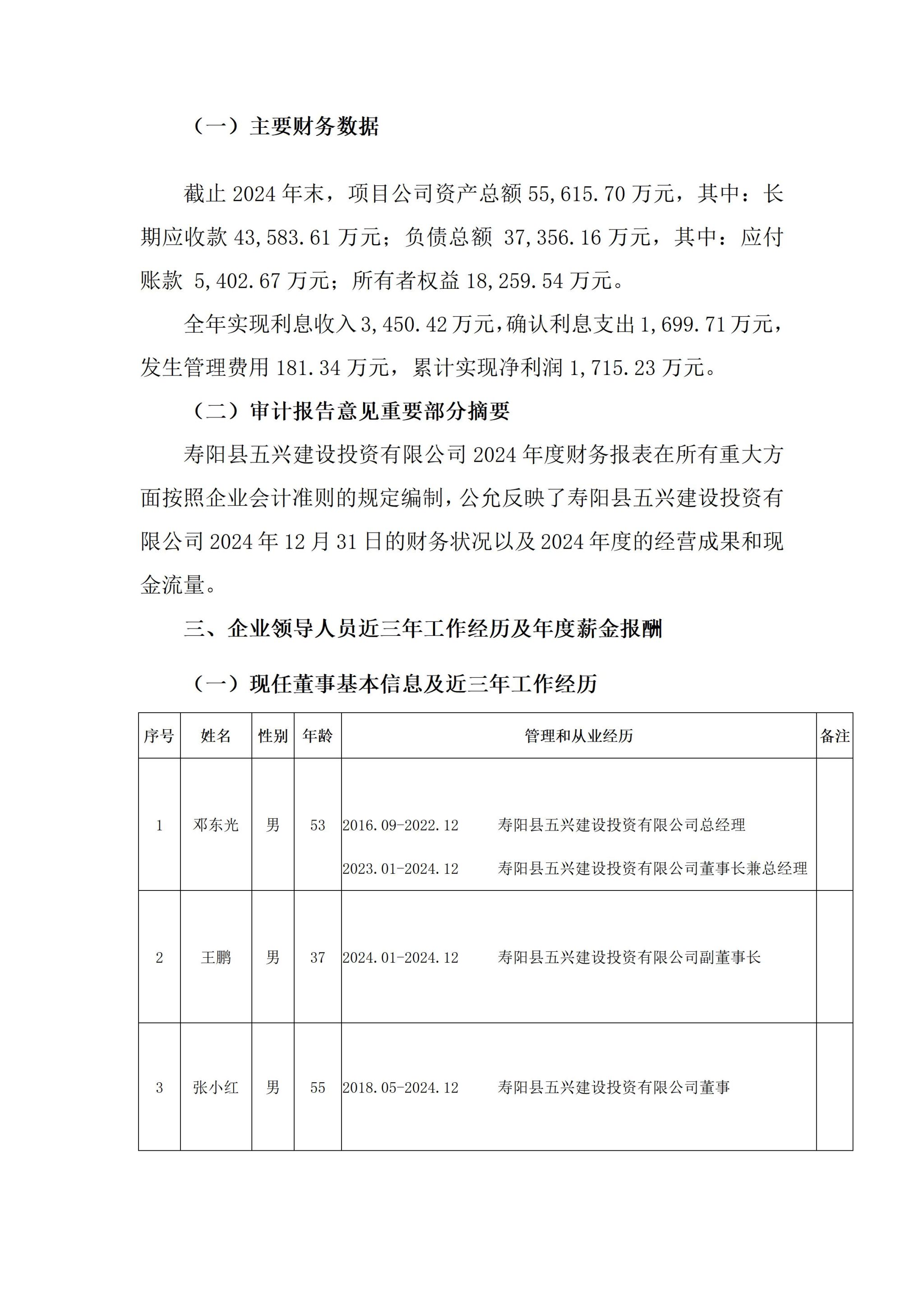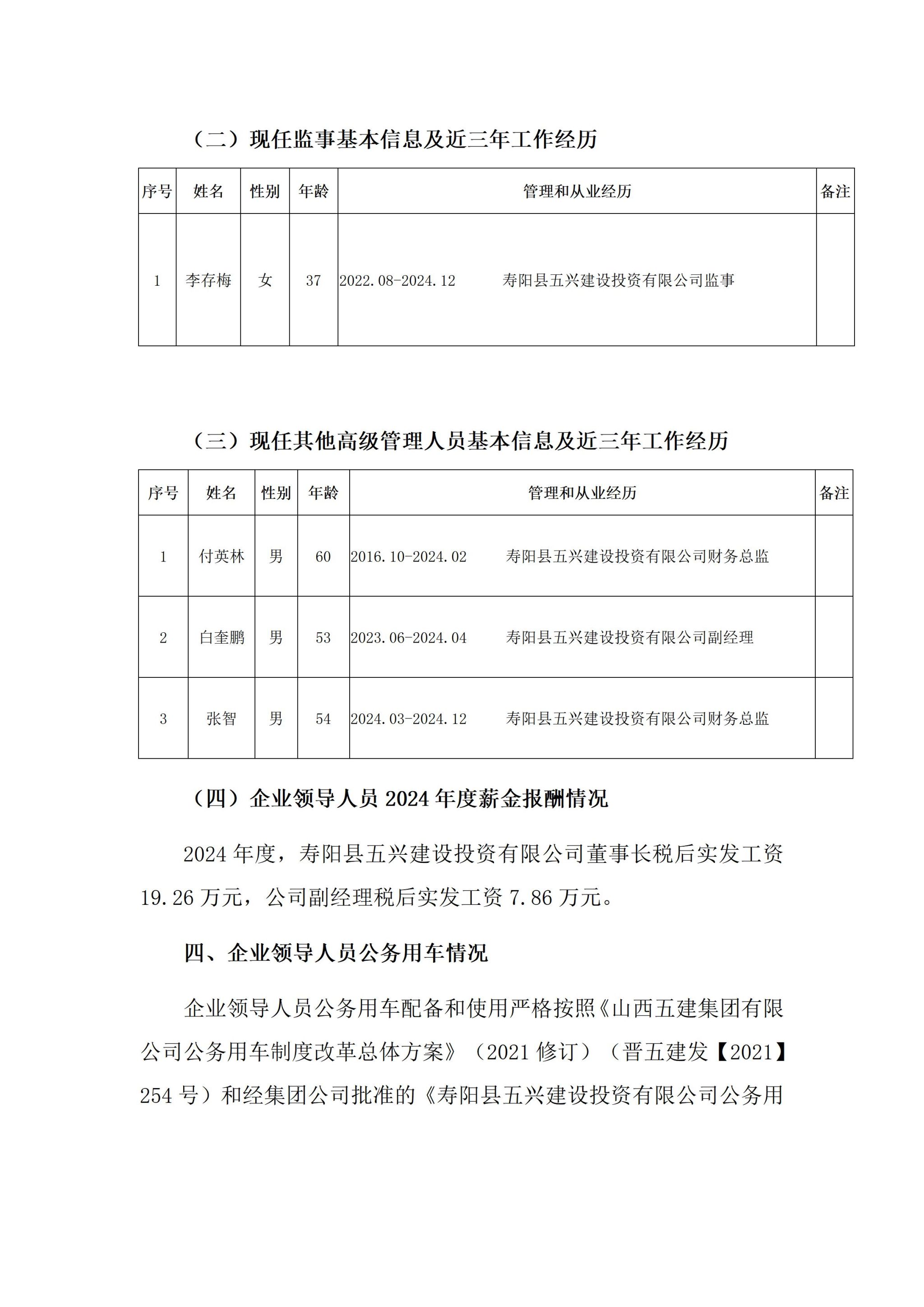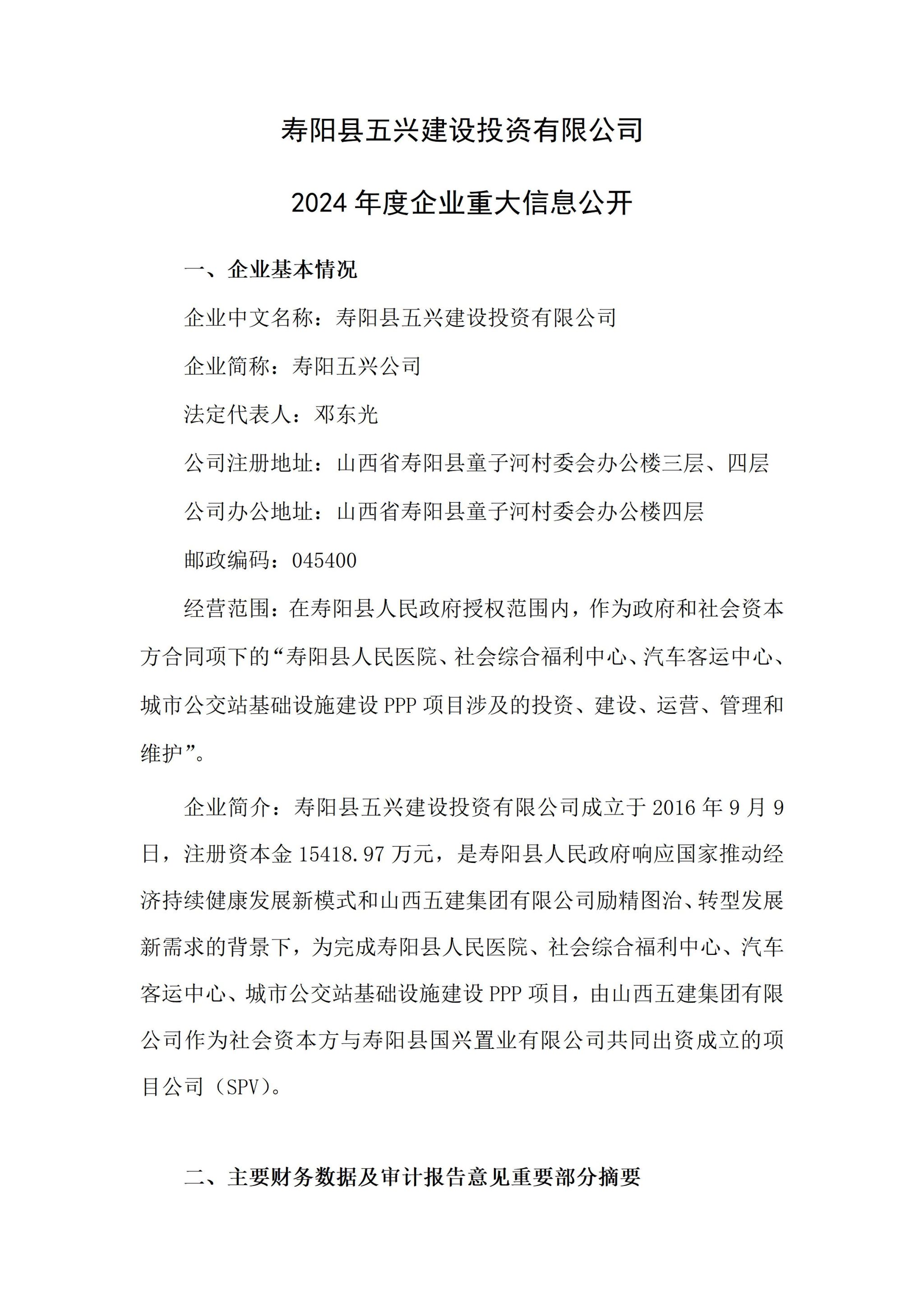 寿阳县五兴建设投资有限公司2024年度企业重大信息果真