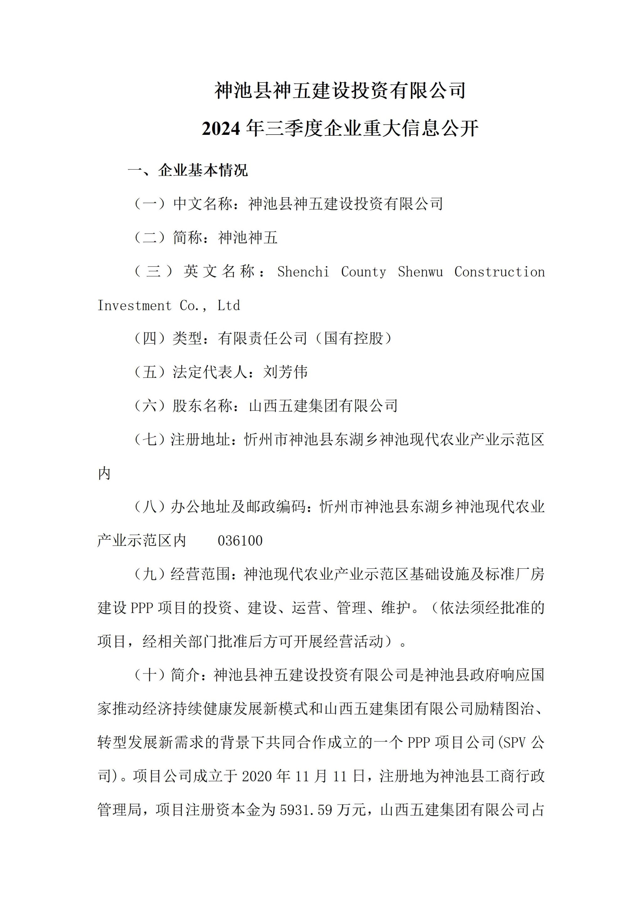 神池县神五建设投资有限公司2024年三季度企业重大信息果真